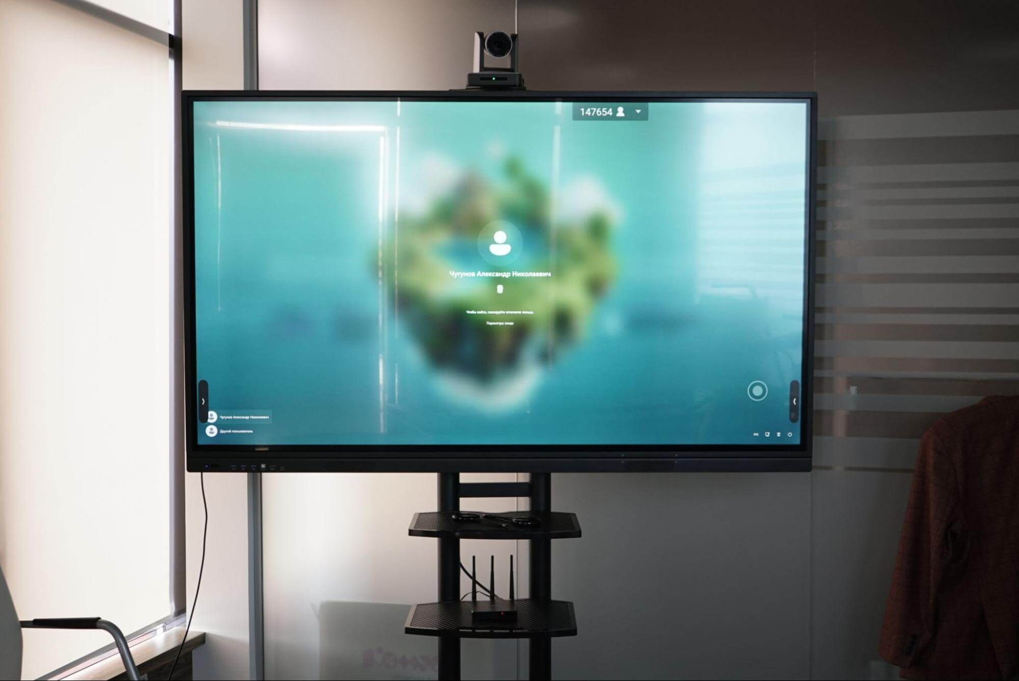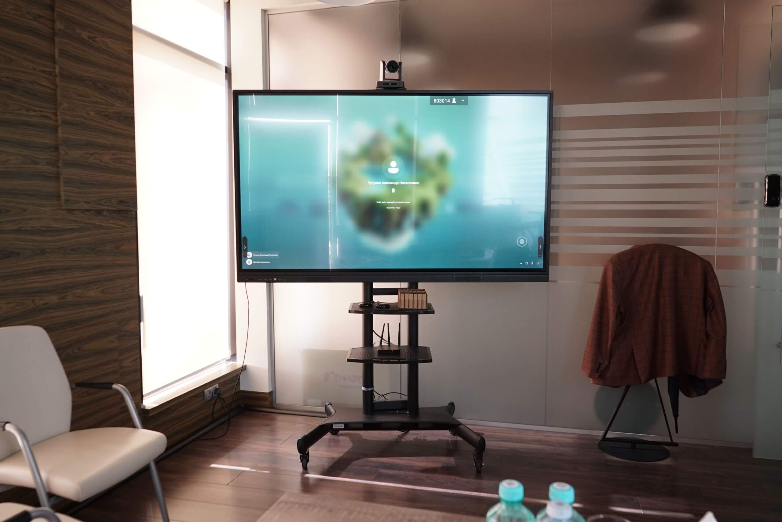 Мы превратили стандартную переговорную комнату компании в комфортное место для онлайн-встреч любого формата, где: